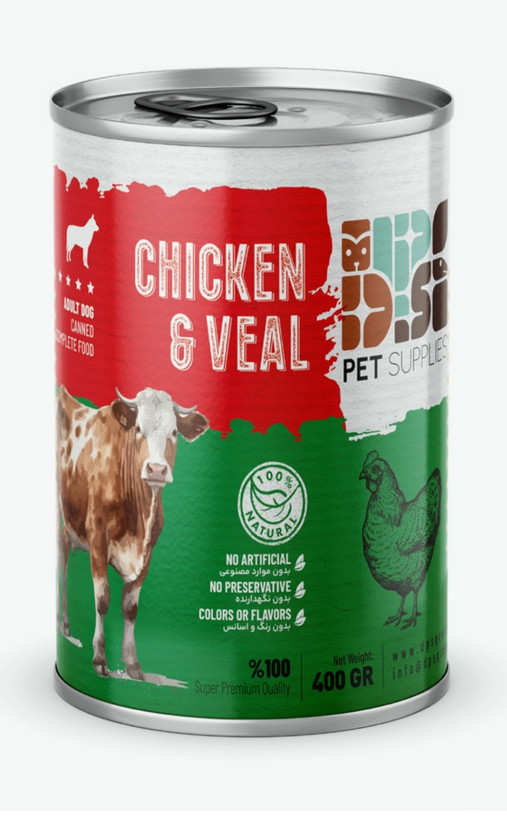 🍗🥩 کنسرو نچرال مرغ و گوساله مخصوص سگ بالغ – ۴۰۰ گرمی
