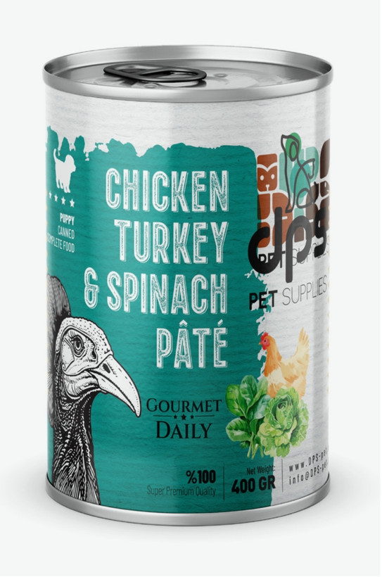 کنسرو پته مرغ و بوقلمون و اسفناج توله سگ 400 گرمی