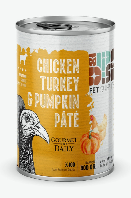 🐕🦺 کنسرو سوپر پرمیوم پته مرغ، بوقلمون و کدو حلوایی – مخصوص سگ بالغ | ۸۰۰ گرم