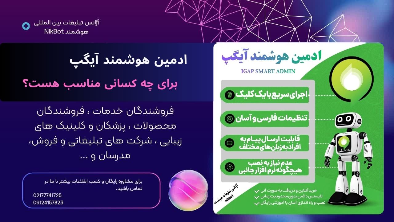 ربات هوشمند مدیریت و تبلیغات آیگپ | NIKBOT