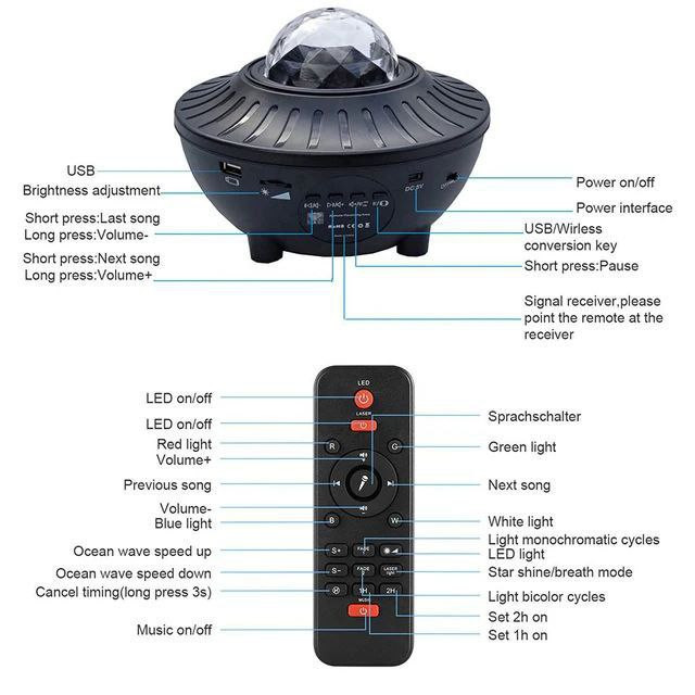 این پروژکتور مناسب شبهای آرام، مهمانیها و لحظات خاص است و تجربهای صوتی و نوری همزمان ارائه میدهد 🎶✨