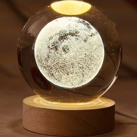 چراغ شب خواب و گوی چراغ دار کریستالی ثابت 8 میل سایز بزرگ برقی با طرح رندوم